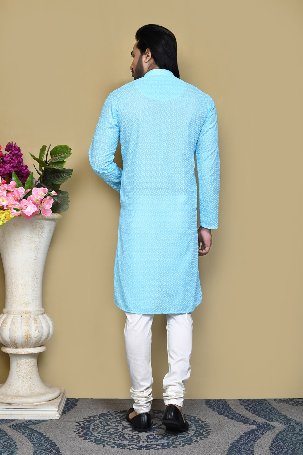 Party Wear Sky Blue Color Cotton Kurta Pajama