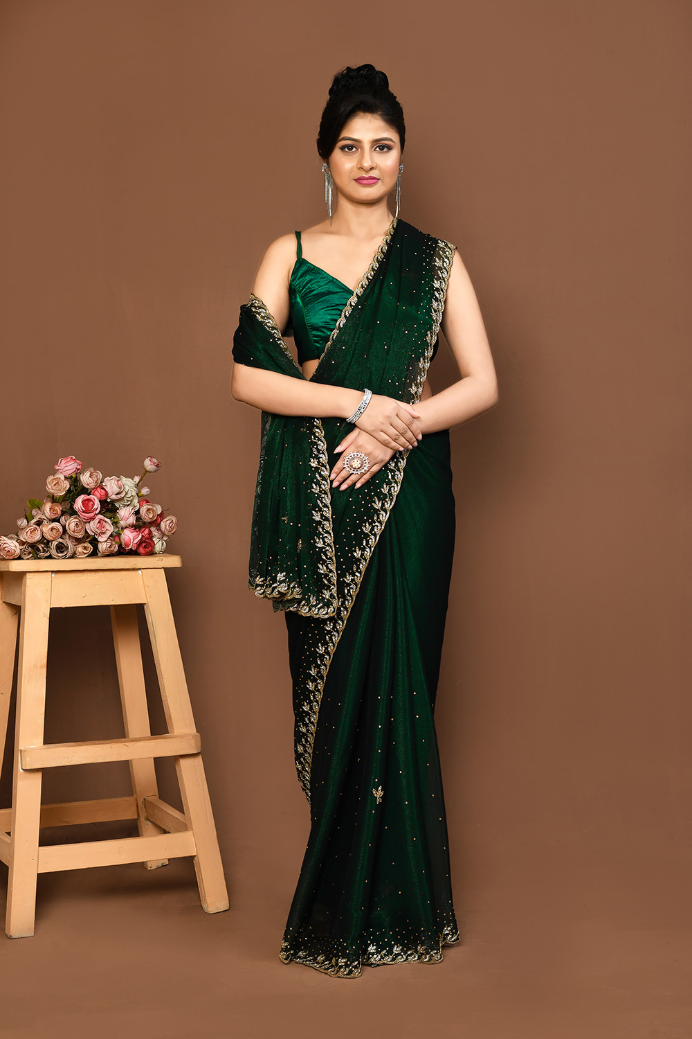 Designer Work With Stone Green Colour Georgette Saree